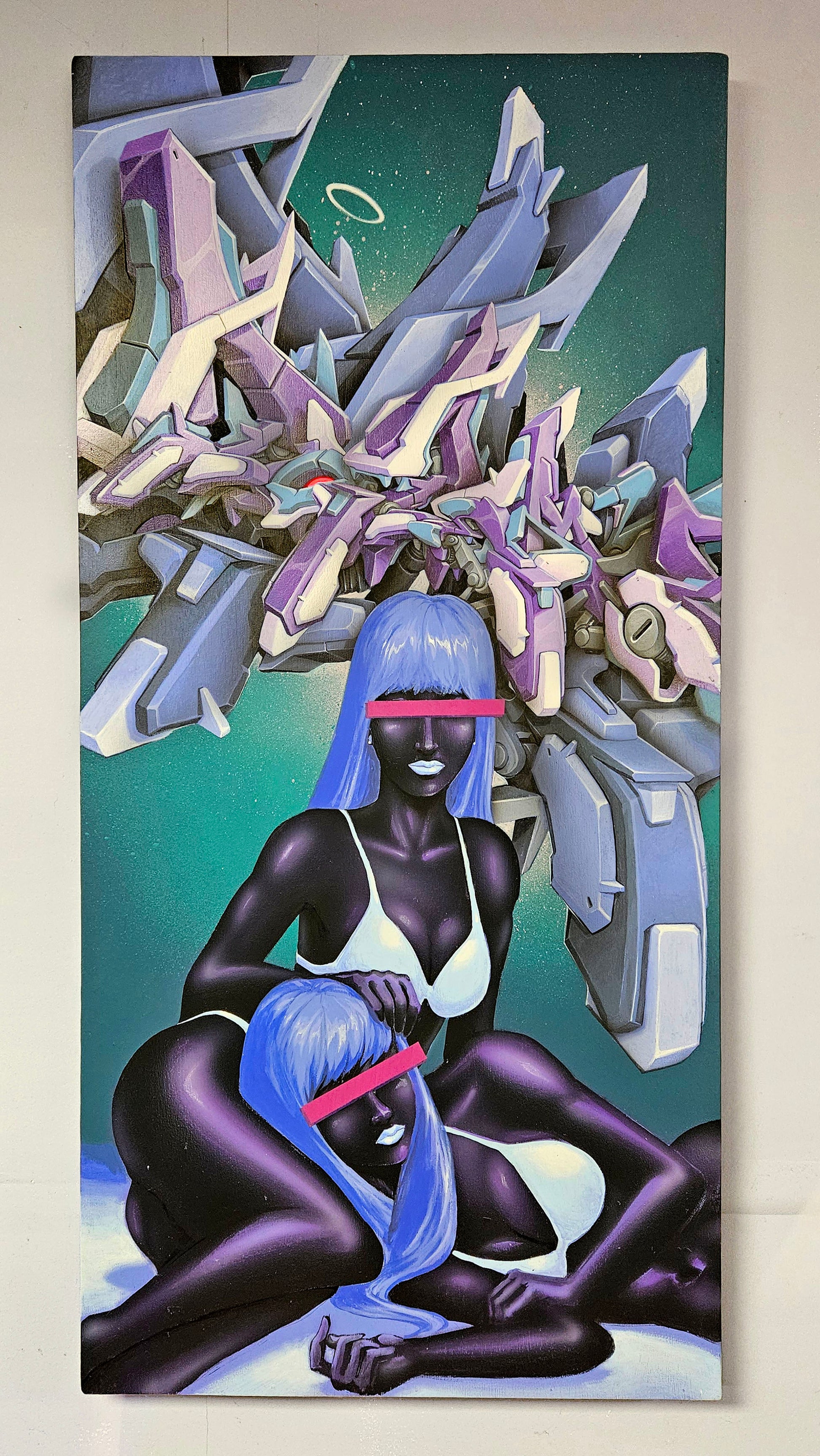 Painting is 2 ft wide x 4 ft tall and 2 inches wide Acrylic and Spraypaint on wood panel canvas